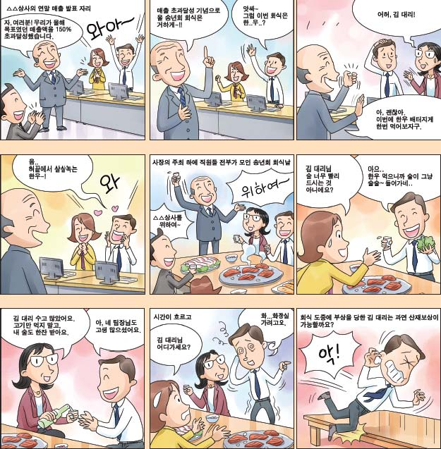 회식중 지나친 음주가 재해로 이어지는 사례가 있는 만큼 기업에서는이 점에 유의, 송년행사를 기획·운영하여 사고 없는 즐거운 송년회가 되길 바랍니다.